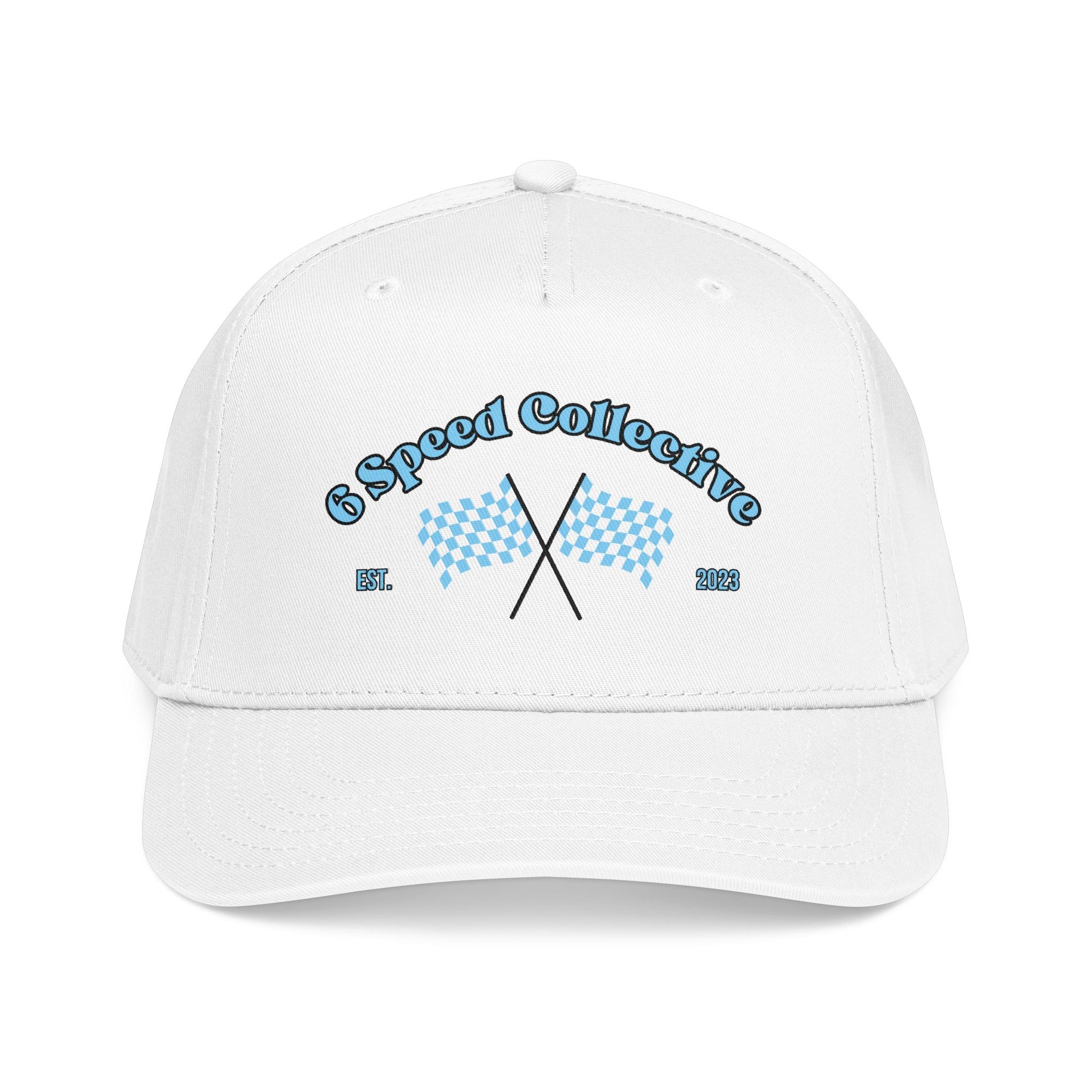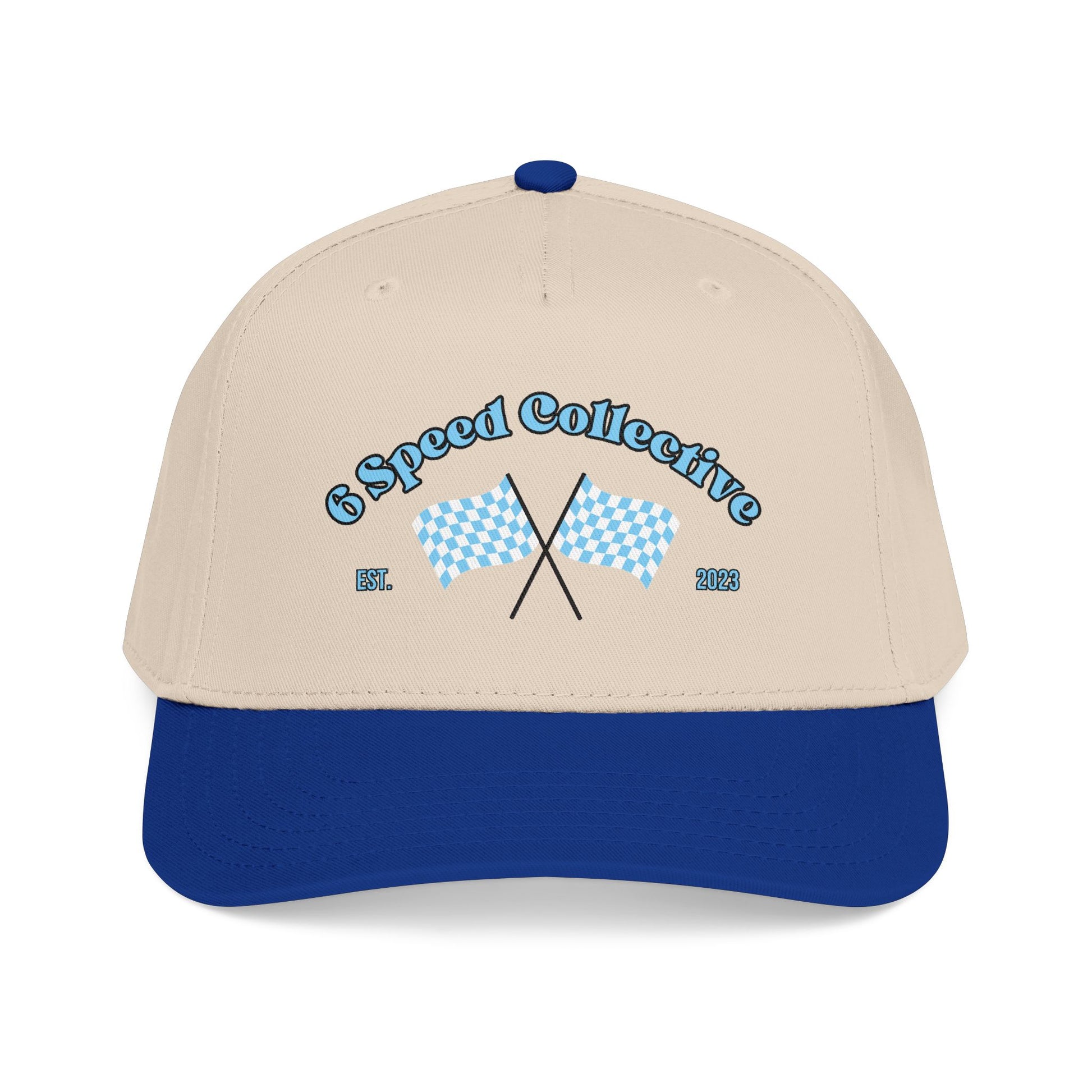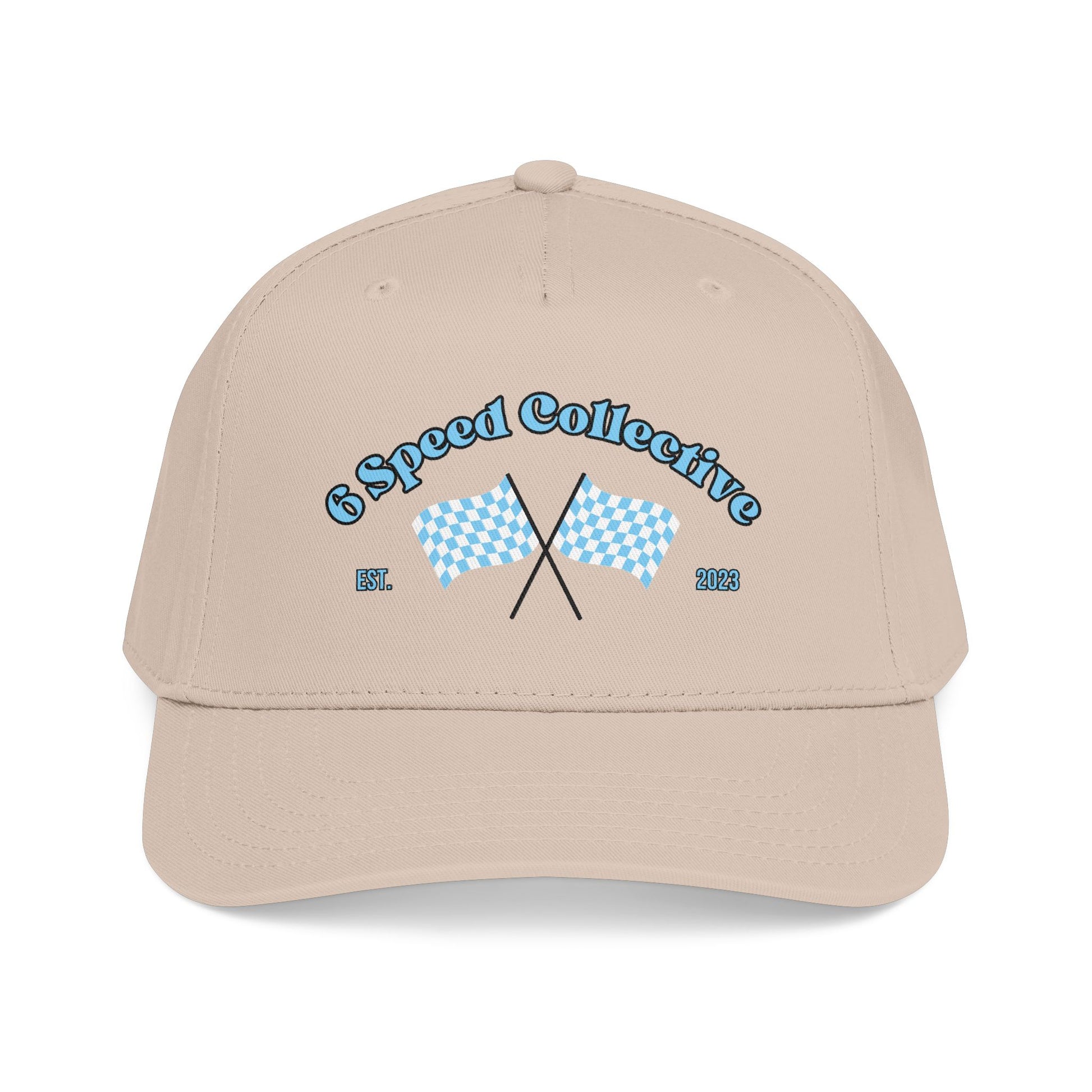 Lightweight structure and a clean front make this mid-profile cap feel both casual and considered. The embroidered crossed checkered flags and arched club name give it a vintage racing-club vibe — the kind of hat you reach for when you want to look put-together without trying. Soft beige fabric, matching undervisor, and subtle stitched eyelets keep the look muted so the blue-and-white emblem stands out. Wear it on weekend drives, car-meet mornings, or when you want to signal your love for laid-back motorsport style.